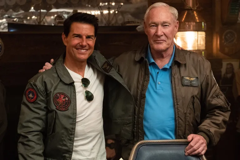 At the heart of both films were the Navy’s technical advisors. For the 1986 original, that role was filled by Rear Admiral Pete “Viper” Pettigrew, a real-life TOPGUN instructor. In fact, the name “Viper” was borrowed for the film’s fictional Commander Mike Metcalf, played by Tom Skerritt. Pettigrew himself appeared briefly in the movie—as “Perry,” the older aviator at the bar when Maverick first meets Charlie.